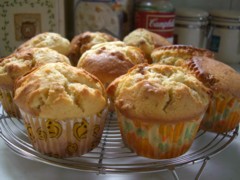 | 3度目の正直で出来あがった、このマフィン。 まじ、おいしいです。 生地が違います。 サワークリームのおかげ・・・だと思う!(笑) これからは、"サワークリーム様"と呼ばせていただこう。 っていうくらい、おいしいんだなぁ〜。 |